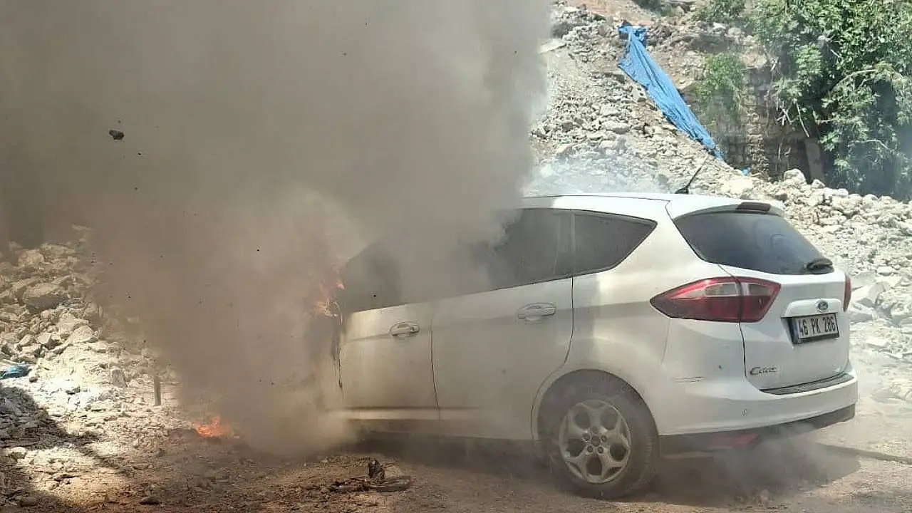 Kahramanmaraş'ta park halindeki otomobil alev aldı