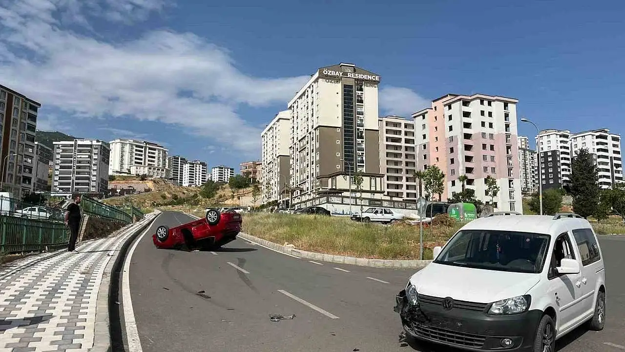 Kahramanmaraş'ın merkez Onikişubat ilçesi Yirmiikigün Mahallesi'nde meydana gelen trafik kazasında, bir otomobil hafif ticari araca çarparak takla attı. Kazada otomobil sürücüsü yaralandı.