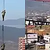 Kahramanmaraş'ta tehlikali anlar! İşçi vinçle indi