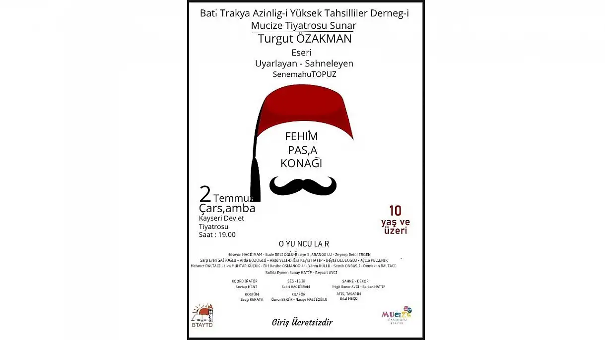 Kapalı gişe oynayan ve büyük beğeni toplayan Batı Trakyalı genç tiyatrocular, Turgut Özakman'ın klasik eserini bu kez Kayseri Devlet Tiyatrosu'nda sahneleyecek. Ücretsiz gösterinin tüm detayları Kayseri Anadolu Haber'de...