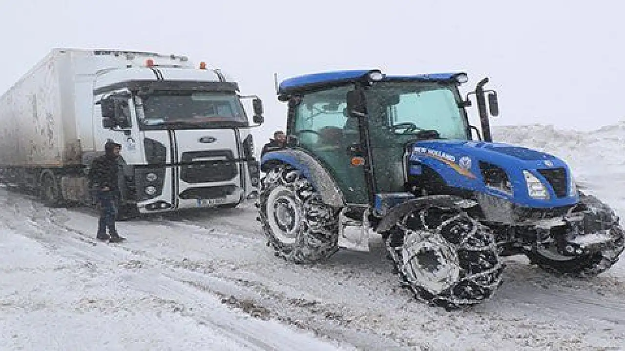 Sivas'ı Erzincan'a bağlayan 2 bin 190 yüksekliğindeki Kızıldağ Geçidinde etkili olan kar yağışı sürücülere zor anlar yaşattı. Civardaki köylüler beyaz esareti fırsata çevirerek traktörlerle yolda kalan tırları çekerek para kazanıyor.