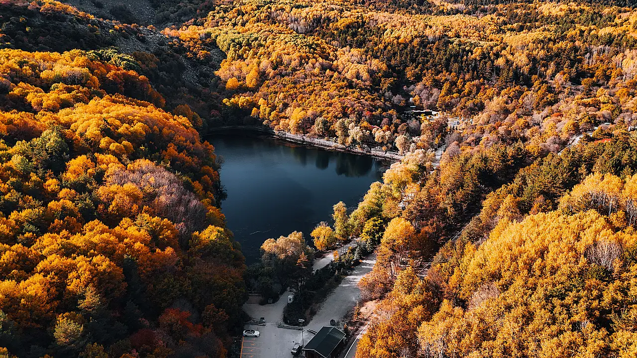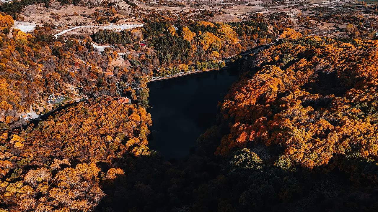 Ankara’nın Çubuk ilçesinde doğal güzellikleriyle ziyaretçilerini hayran bırakan Karagöl Tabiat Parkı’nda sonbaharda adeta renk cümbüşü yaşanıyor. Dron ile havadan görüntülenen Karagöl, Çubuk ilçe merkezine 22 kilometre uzaklıkta yer alıyor. Karagöl Tabiat Parkı, içerisindeki çam, meşe, dağ kavağı ve ıhlamur ağaçlarıyla hem ziyaretçilerine hem de şehirden uzak doğayla iç içe zaman geçirmek isteyen vatandaşlara eşsiz bir manzara sunuyor.
