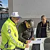 Kaskla servis aracının camını kırdı ehliyetine el konuldu!