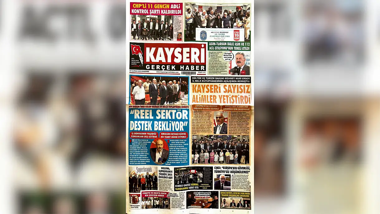 Kayseri Gerçek Haber Gazetesi bugün manşetine Kayseri Ticaret Odası Haziran ayı Olağan Meclis Toplasında Başkan Ömer Gülsoy tarafından yapılan açıklamalara yer verdi. İlk sayfada Kayseri İl Halk Kütüphanesi açılış töreni de geniş yer buldu.