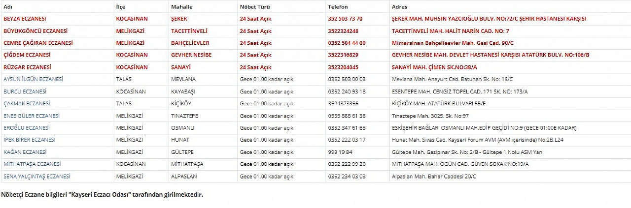 10 Temmuz Pazarertesi günü Nöbetçi Eczaneler, Kayseri'deki 10 Temmuz tarihli nöbetçi eczaneler... Nöbetçi eczaneler Kayseri... Kayseri'deki nöbetçi eczaneler hangileri?