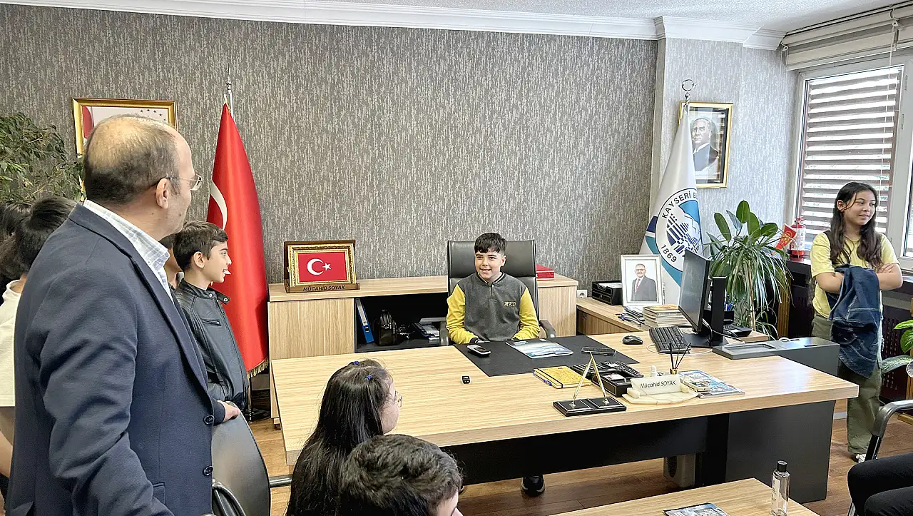 Kayseri Büyükşehir Belediyesi, öğrencilerin kurumları tanıması amacıyla düzenlenen etkinlik kapsamında Sakarya Ortaokulu 5. sınıf öğrencilerini ağırladı. Öğrenciler, Genel Sekreter Yardımcısı Mücahid Soyak’ın konuğu oldu ve kurum içerisindeki birimleri gezerek Büyükşehir Belediyesi’nin işleyiş ve faaliyetleri hakkında bilgiler aldı.