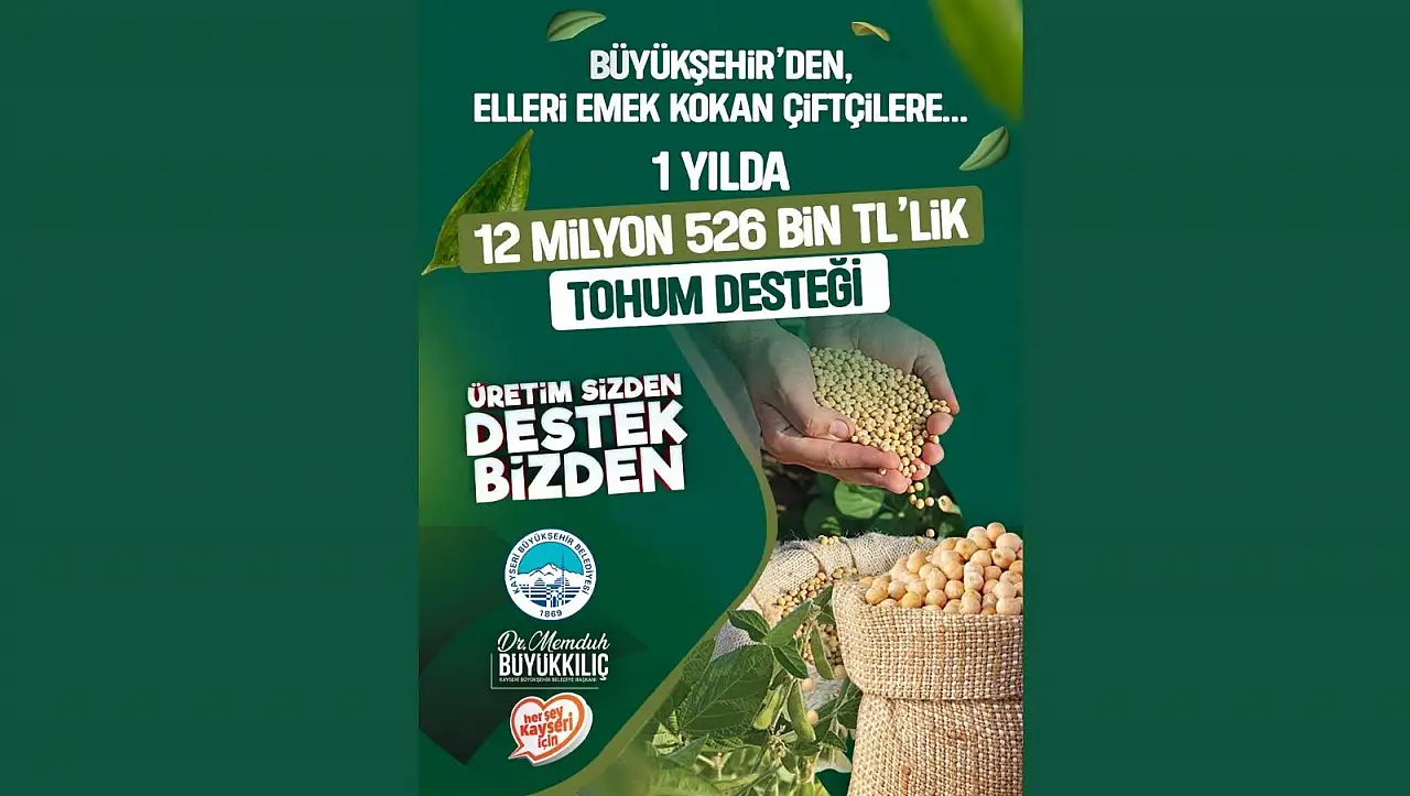 Kayseri Büyükşehir Belediyesi Kırsal Hizmetler Daire Başkanlığı tarafından 2025 yılında Kayserili üreticilere verilen toplamda 262 ton nohut, yeşil mercimek ve buğday tohumu ile 3 bin fidan desteğinin mali karşılığı 12 milyon 526 bin TL oldu.