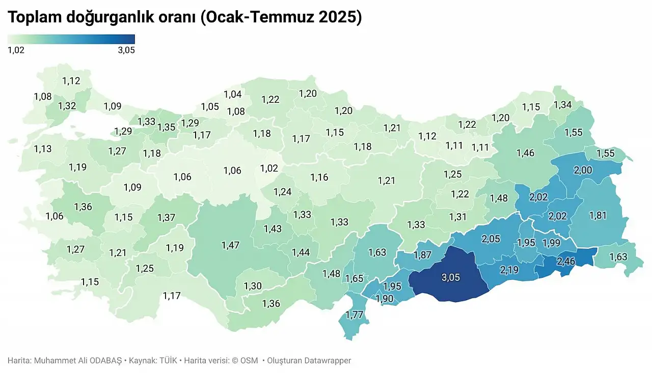 TÜİK’in açıkladığı ülke genelindeki doğurganlık hızı 2023’te 1,51, 2024’te ise 1,48 olarak kaydedilmişti.