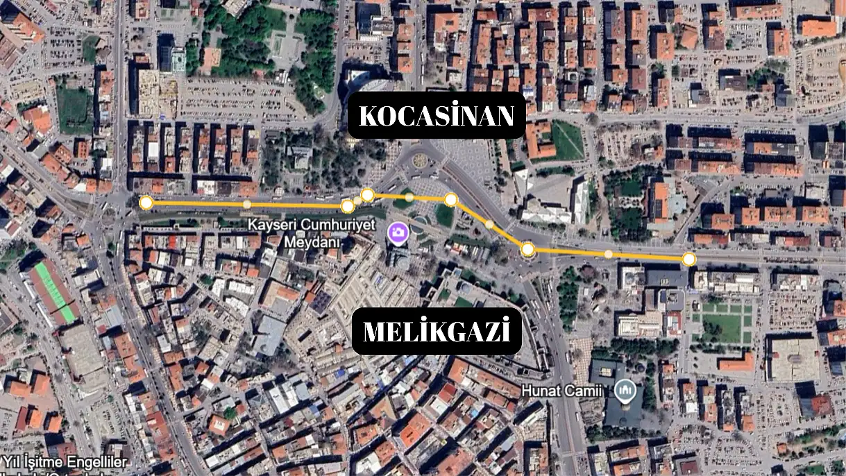 Öte yandan Kayseri Cumhuriyet Meydanı iki merkez ilçenin birleşme noktasında yer alıyor. Kayseri Cumhuriyet Meydanı’nın tarihi çarşı ve 27 Mayıs olarak bilenen bölgesi Melikgazi ilçesi sınırları içerisindeyken tören alanı, Valilik, Sahabiye Medresesi gibi tarihi yapıların olduğu bölgesi ise Kocasinan ilçesi sınırları içeresinde yer alıyor.