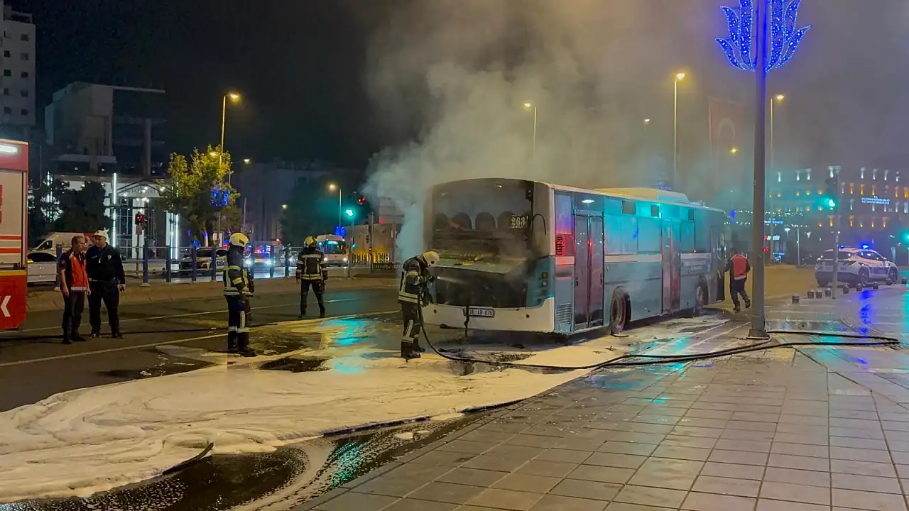Kayseri Cumhuriyet Meydanı'nda otobüs yangını!