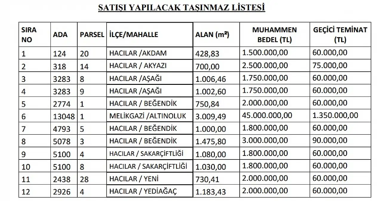 Kayseri'de 12 parsel satışa çıkıyor: 10 taksitle ödenecek!