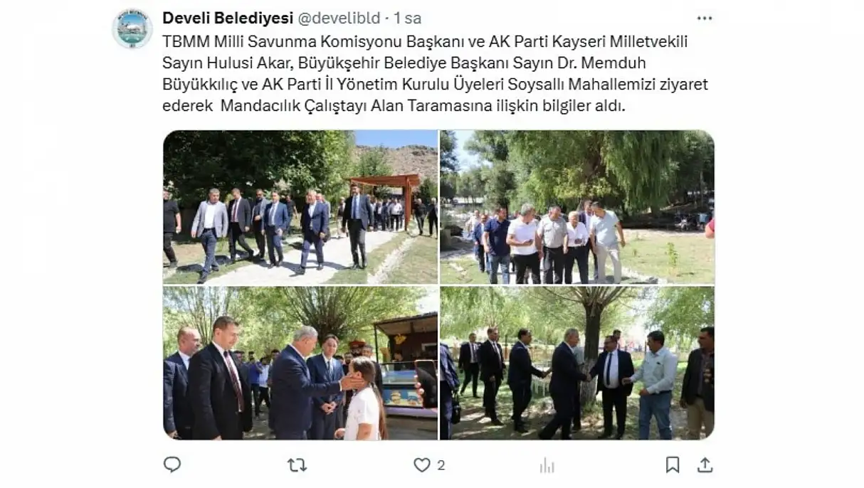 TBMM Milli Savunma Komisyonu Başkanı ve AK Parti Kayseri Milletvekili Hulusi Akar, Büyükşehir Belediye Başkanı Memduh Büyükkılıç ve AK Parti İl Yönetim Kurulu Üyeleri Soysallı Mahallesini ziyaret etti.