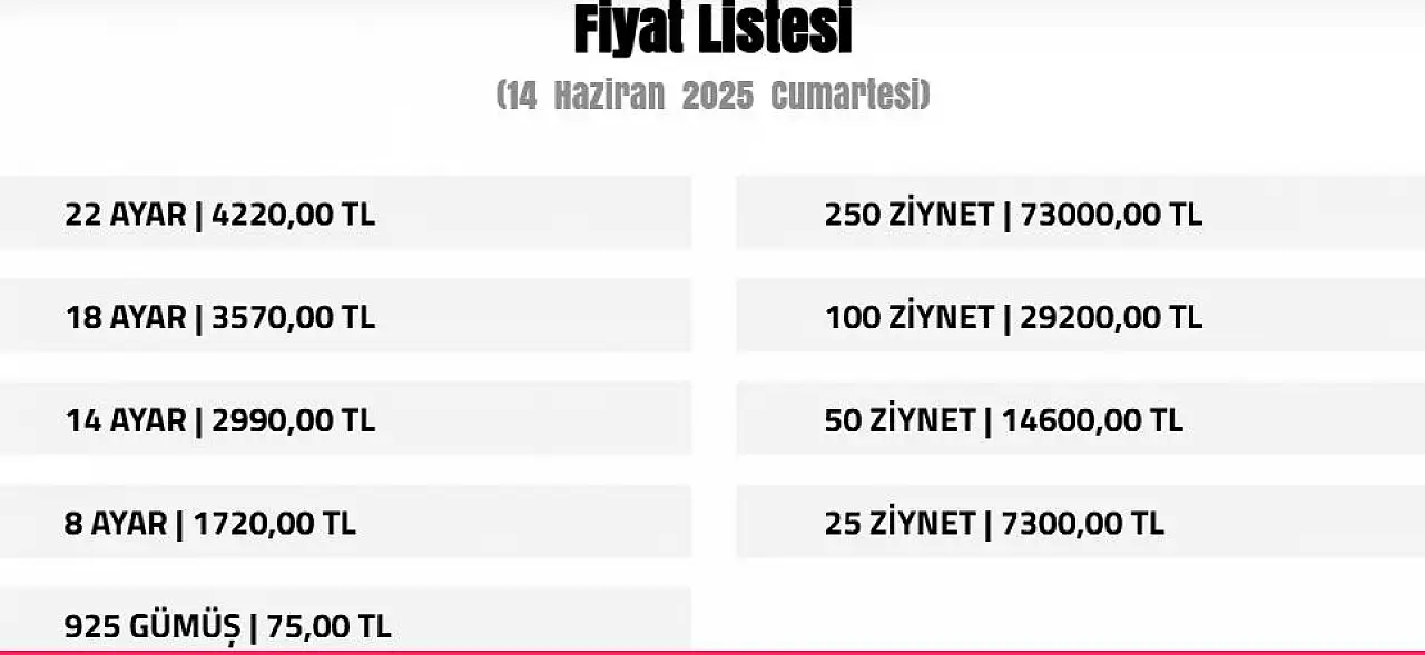 14 Haziran 2025 güncel altın fiyatları kaç para oldu?
