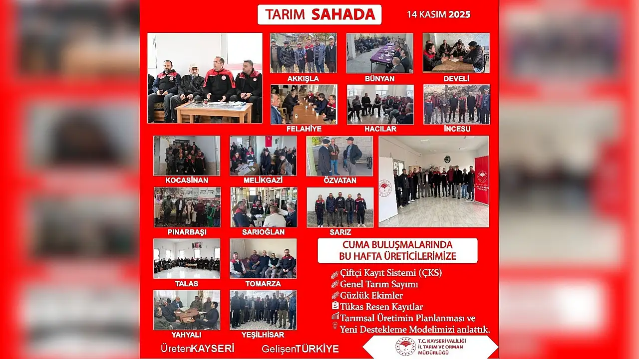 Kayseri İl Tarım ve Orman Müdürlüğü il genelindeki çalışmalarını sürdürüyor. Bu kapsamda 16 ilçede eş zamanlı olarak çiftçilere bilgilendirme toplantısı düzenlendi.