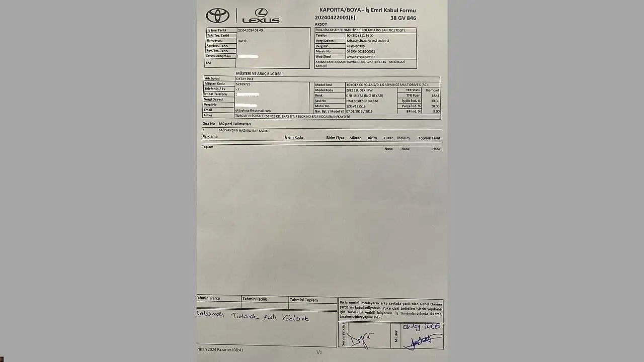 Servisten ‘‘basınç sensörü’‘ adı verilen parçanın eksik olduğu bilgisini aldığını aktaran İnce, ‘‘Sağ ön ve arka kapıların tamiri yapıldı ancak bu parça 17 aydır temin edilmedi. Böyle bir bekleyiş kabul edilemez. Her ay arıyorum, ay başında teslim edileceği söyleniyor ama sonuç değişmiyor’‘ diyerek tepkisini dile getirdi.