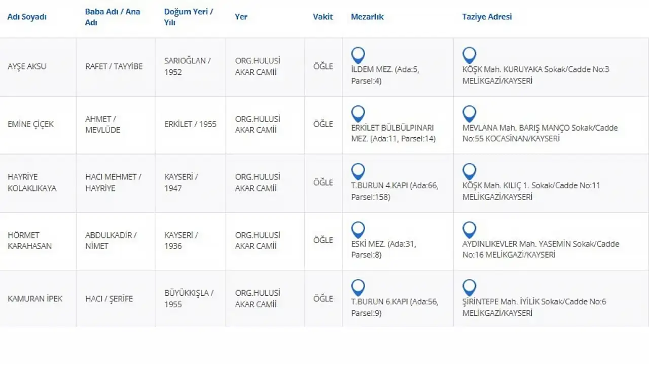 - Kayseri'de 17 Haziran Salı günü 5 kişi hayatını kaybetti - İşte vefat edenler listesi...