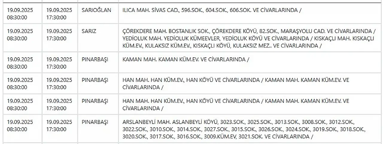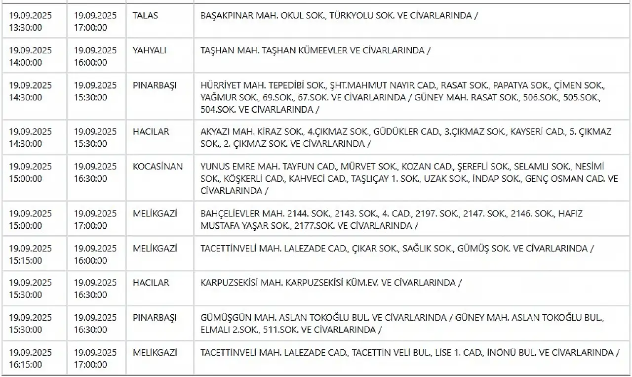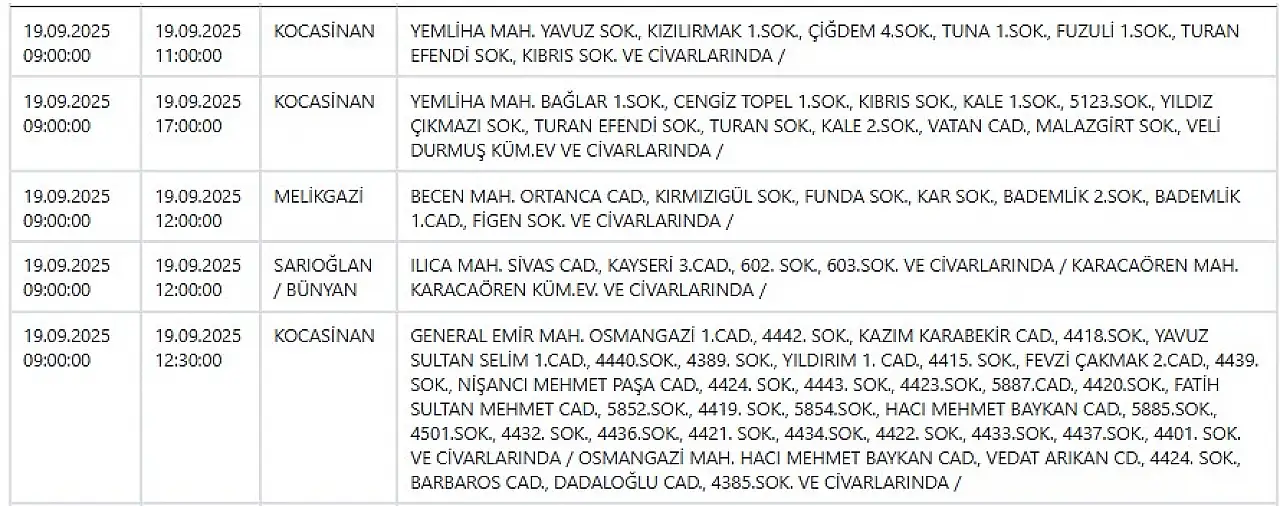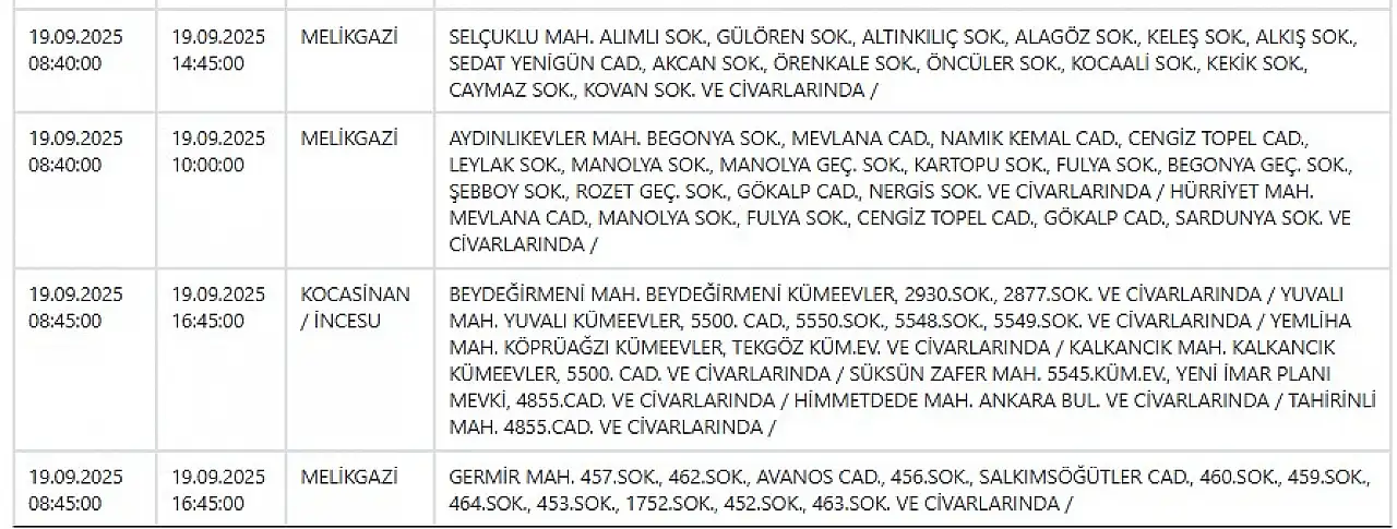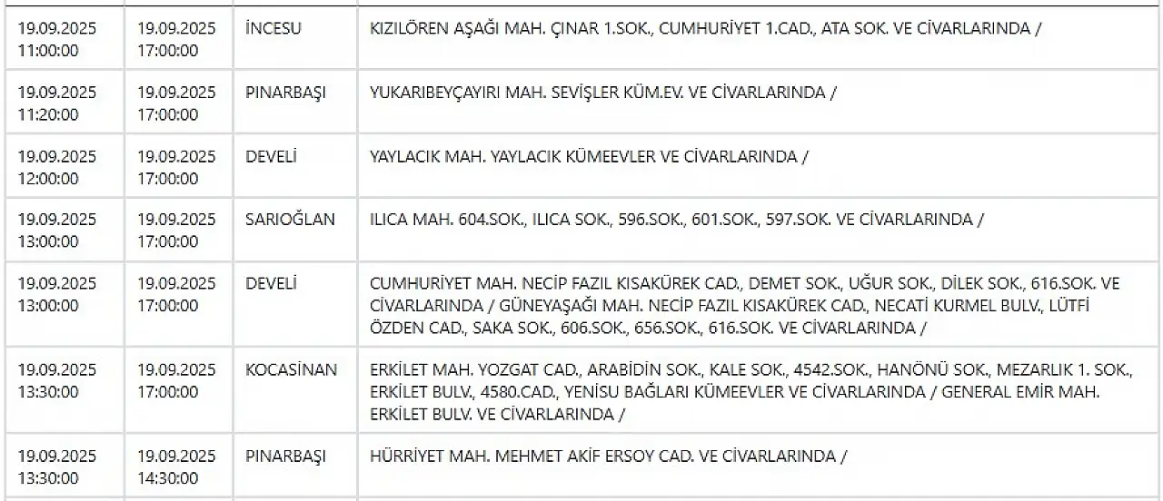 - Kayseri'de 19 Eylül'de büyük elektrik kesintisi: KCETAŞ uyardı, Kayseri'de elektrikler ne zaman gelecek?