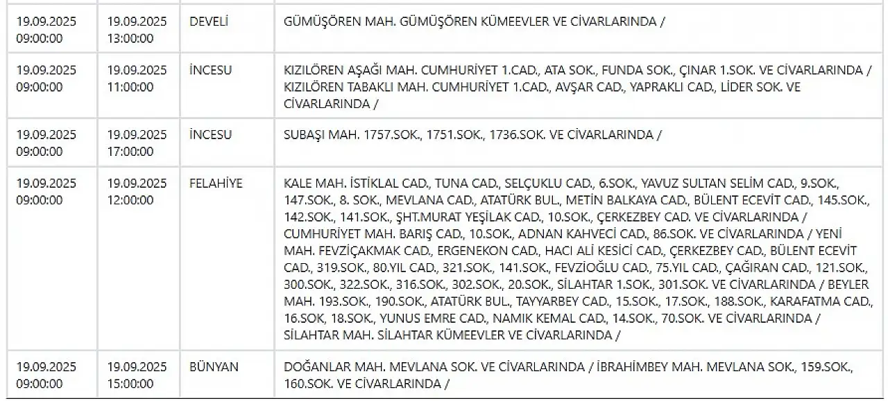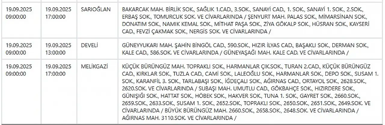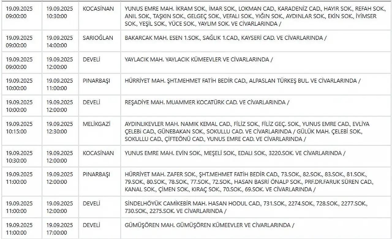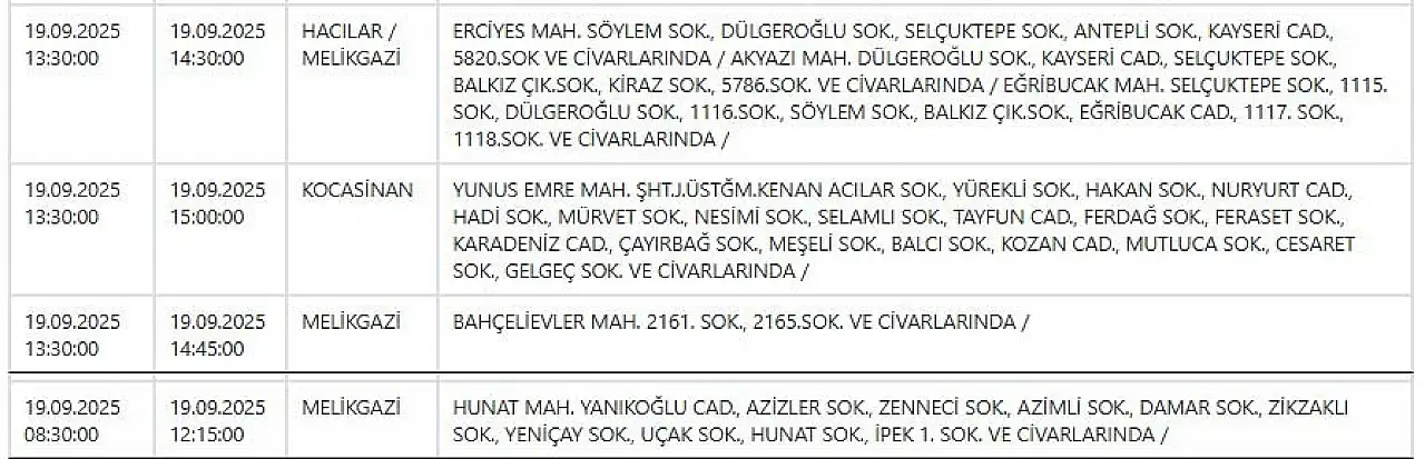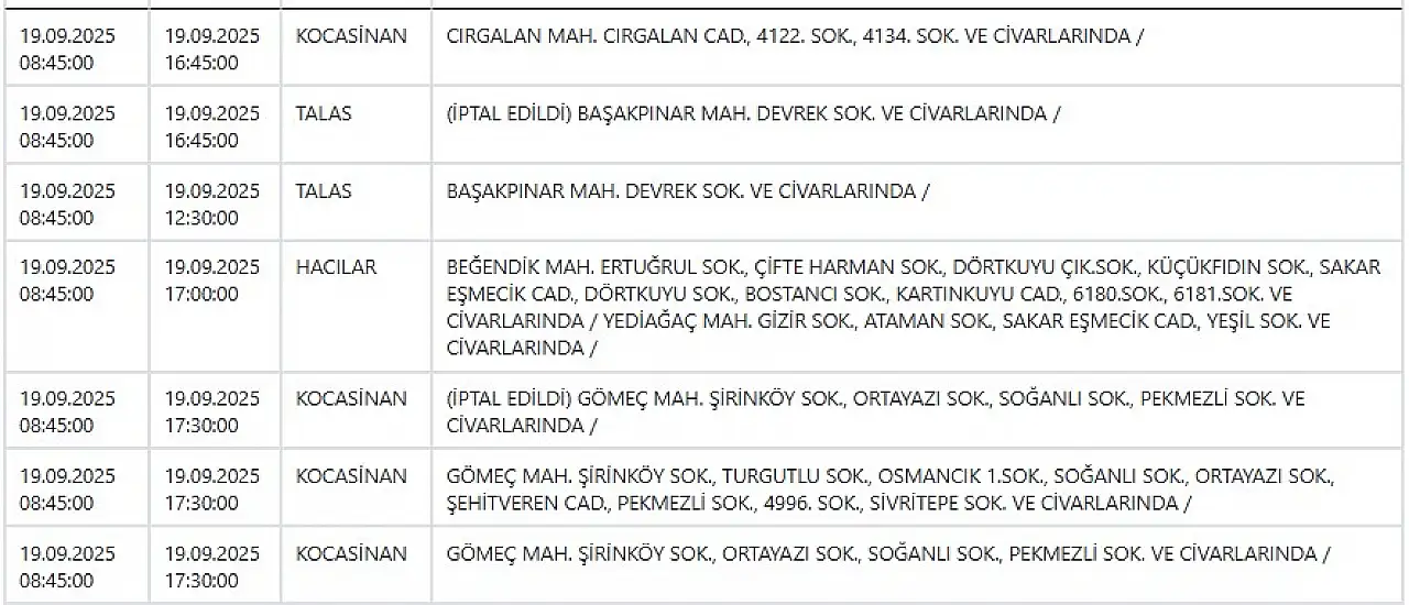 - Kayseri'de 19 Eylül'de büyük elektrik kesintisi: KCETAŞ uyardı, Kayseri'de elektrikler ne zaman gelecek?