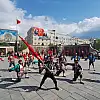 Tören, çelenk sunma etkinliğinden önce düzenlenen zeybek gösterisiyle başladı. Gösteriyi izlemek üzere alana gelen çok sayıda vatandaş, meydanda yerini aldı.