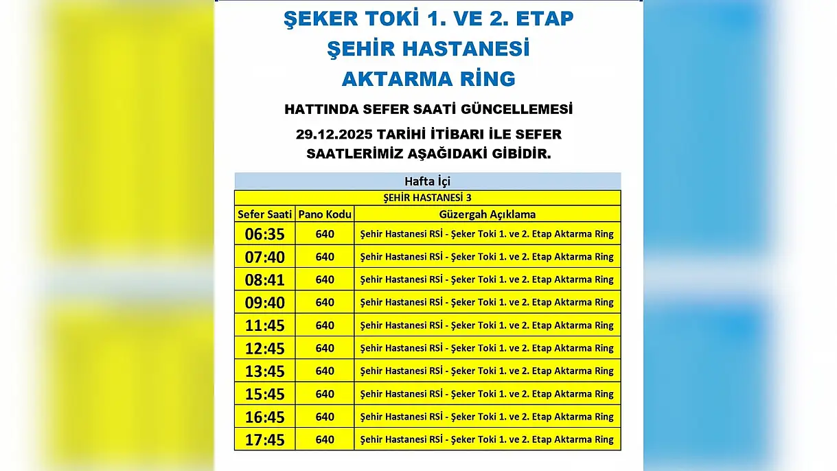 Kayseri Ulaşım A.Ş. tarafından yayımlanan 27 Aralık 2025 tarihli yeni duyuruya göre şehir genelindeki otobüs hatlarında çok sayıda mahalle ve ilçeyi ilgilendiren önemli değişiklikler yapıldı. Detaylar Kayseri Anadolu Haber'de…