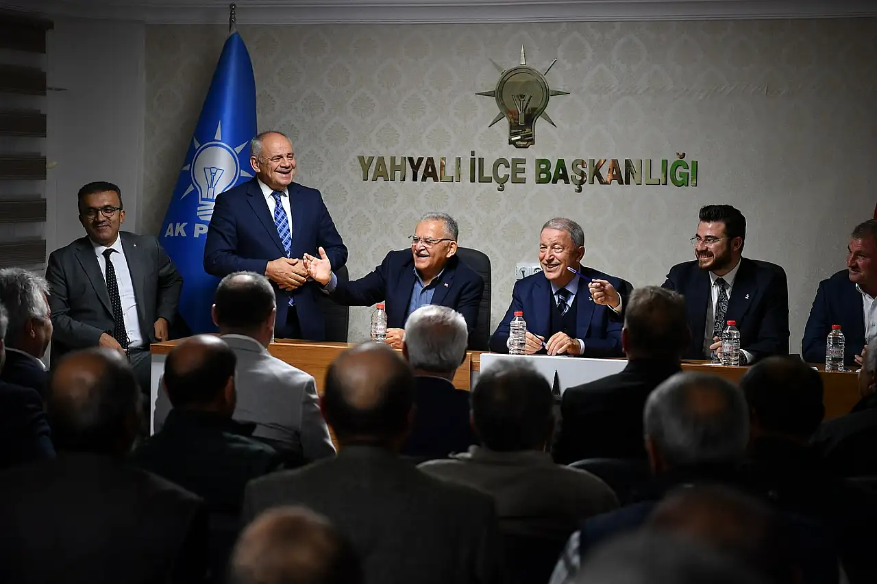 Son durak ise Yahyalı ilçesi olurken Başkan Büyükkılıç ve TBMM Milli Savunma Komisyonu Başkanı Akar, İl Başkanı Okandan ile birlikte AK Parti Yahyalı İlçe Başkanlığı’nı ziyaret ederek İlçe Başkanı Adem Sarıçiçek ve teşkilat mensuplarıyla bir araya geldi. Başkan Büyükkılıç, ‘‘Yahyalı bizim baş tacımız, gönlümüzde yer eden bir ilçemiz. Bu gönül insanlarına ne yapsak az’‘ dedi. Akar ise, ‘‘Bugüne kadar çok işler yapıldı, hizmet bayrağını daha da ileriye taşıyacağız. Büyükşehir Belediyemiz, hizmet anlayışıyla Anadolu’da örnek gösterilen bir konuma sahip’‘ diye konuştu.