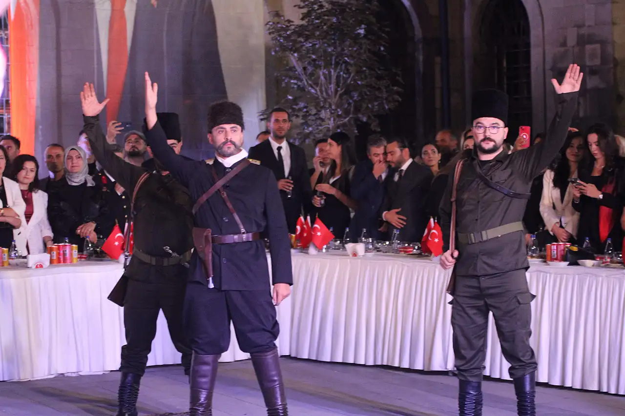 Resepsiyonda bir konuşma yapan Kayseri Valisi Gökmen Çiçek, "Bin yıl önce Sultan Alparslan’la beraber bu toprakları vatan ettik. Anadolu’ya geldiğimiz andan itibaren çok bedeller ödedik. Anadolu’nun kapılarını açtığımız andan itibaren ufkumuz çok uzaklardaydı. Diyardan diyarlara geçtik. Zaferden zaferlere koştuk. Dünyaya hep adalet ve nizam götürdük, huzur götürdük. Çok büyük medeniyetler kurduk. Medeniyetler inşa ettik. Ancak gün geldi. Zor günlerde geçirdik. Bu topraklarda Moğol istilasını gördük. Haçlıların işgalleriyle karşılaştık. Ancak milletimiz öz değerlerine sahip çıkarak, bu istilaları başından def etti. Ardından Osman Gazi ile bambaşka bir yolculuğa çıktık. Balkanlar önümüze açıldı. Sel gibi akıyorduk. Fatih Sultan Mehmet’le İstanbul’u aldık. 3 kıtaya hükmediyorduk. Bütün coğrafyalarda adalet ve nizam vardı. Güçlüydük, kazanandık. Ancak merhametimiz ve vicdanımız her zaman gücümüzün önünde bize setti. Biz bir merhamet medeniyetiydik. Bizim medeniyetimizde soykırım, katliam asla olmamıştır. Anadolu parçalanmak üzereydi. Afyon işgal altındaydı. İzmir işgaldeydi. Gözümüzün bebeği İstanbul işgal altındaydı. İşte bu millet yine içerisinden çıkardığı lideriyle yani Gazi Mustafa Kemal Atatürk önderliğinde bir ve beraber olarak, küllerinden doğarak, o karanlığı def etti. İstiklale yürüdü. Bedel ödeye ödeye bugünlere gelmiş bir millet olarak uyanık olmalıyız" ifadelerini kullandı.
