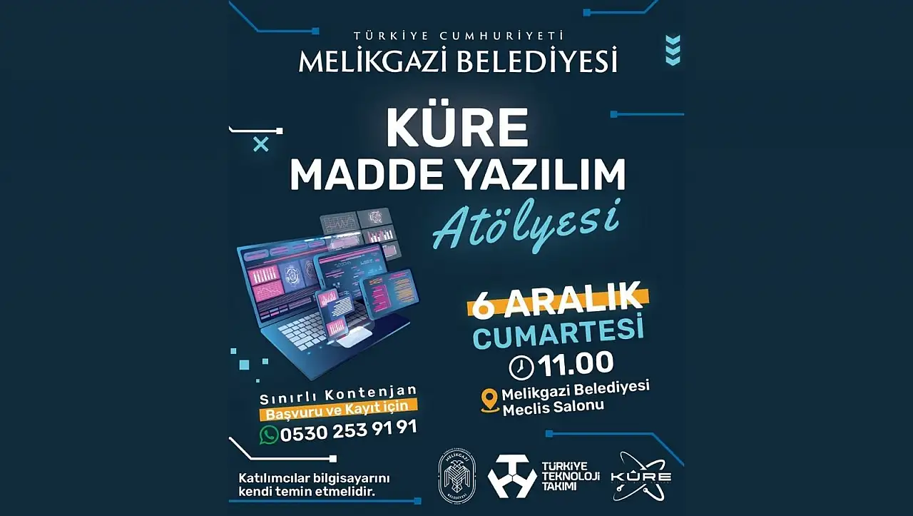 KÜRE Dijital Ansiklopedi'nin içeriğini güçlendirmek ve hep birlikte ortak bir yazım dili oluşturmak için bu atölye düzenlenecek. KÜRE ekosisteminin içerik üretim kalitesini güçlendirmek ve ortak dil oluşturmak amacıyla düzenlenen KÜRE Madde Yazım Atölyesi 6 Aralık Cumartesi günü saat 11.00’de Melikgazi Belediyesi Meclis Salonu’nda yapılacak. Katılımcılardan kendi bilgisayarlarını temin etmeleri talep edilirken, sınırlı kontenjan bulunduğu için kayıtların son güne bırakılmaması gerektiği ifade edildi. Başvuru ve kayıt için: 0 530 253 91 91 iletişim numarası ile irtibata geçmesi gerekiyor.