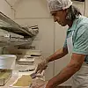 50 yıllık lokum ustası Cebe, ‘Türkiye'de ilk defa gözünüzün önünde lokum yapılıyor ve satışı da burada. Yani vatandaşın gözü önünde yapılıyor. Vatandaşın gözü önünde tepsiyi verip satış yapılıyor’ dedi.