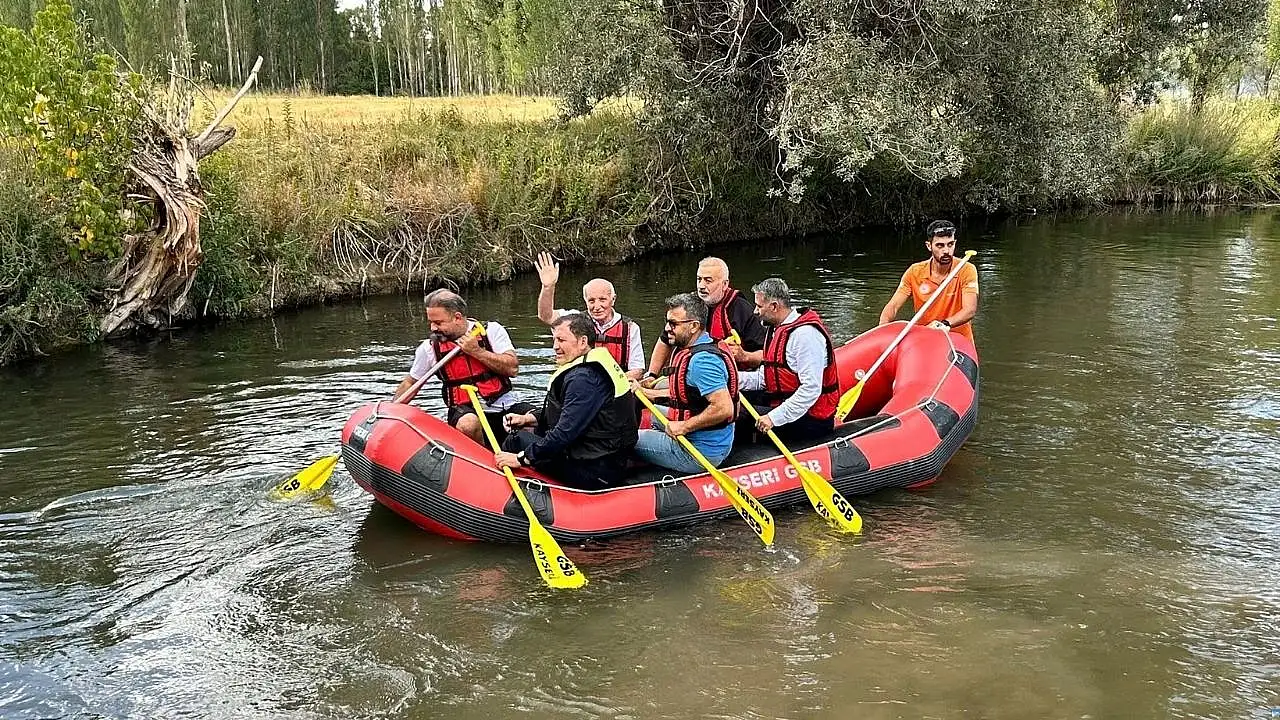 Kayseri'de alışılmadık kareler! Zamantı Irmağı'nda kimler küreklere sarıldı?