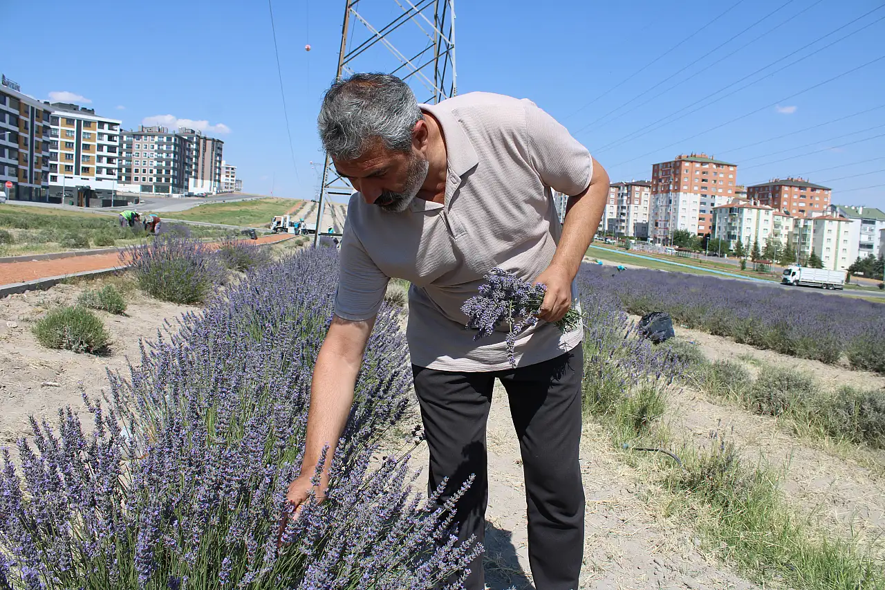 Erkilet Osmangazi Mahallesi’ndeki 2021 yılında oluşturulan ‘Lavanta Bahçesi’nde ürünlerin hasadı yapıldı. 4 yıl önce çiftçilere örnek olması için oluşturulan alandaki lavantaların çiçeğinden, kokusundan ve yağından faydalanmak istediklerini kaydeden Kocasinan Belediyesi Tarımsal Hizmetler Müdürlüğü Eğitmeni Ali Oğuz, Lavanta Bahçesi’nin Kayserililer tarafından da çok sevildiğini kaydetti. Oğuz: 'Kayseri’nin iklimi değişiyor. Biz de çiftçilerimize örnek olsun diye 38 bin metrekare alanımıza 20 bin fide şeklinde lavantalarımızı diktik. Çünkü uzun yıllar sürebilecek bir bitki. 2021 yılında başladık, bu yıl 4. hasadımızı yapacağız. Burada hem Erkilet halkına hem de Kayseri’ye görsel bir şölen sunmak istedik. Lavantanın kokusundan, çiçeğinden, yağından faydalanmalarını istedik. Dış çekime gelip fotoğraf çektirenler çok, yağını kullananlar çok. Bu yıl hasadımızı Yediveren Bayan Kooperatifimize vereceğiz. Hem bayan kooperatifinin kalkınması için, hem çiftçilerimizin kalkınması için elimizden gelen desteği yapıyoruz. Onlar da gerek yağını çıkartarak, endüstriyel bir şirketle anlaşıp kolonyalarını yaptırarak veya buket halinde çiçek olarak değerlendirebilirler' dedi.