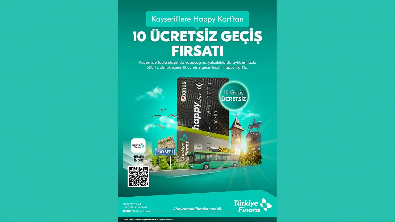 Öte yandan kampanya il içerisindeki hatlar, ilçeler arası taşımacılık ve Kayseri ve ilçe arası hizmet veren araçlarda da kartla ödeme halinde her işlem için 50 TL indirim sağlanacak. Abonman satın alma işlemlerinde de geçerli olacak sistem sayesinde vatandaşlar aylık 500 TL'ye varan kazanım sağlayacak. Aktarma hakkı da korunacak. Detaylı bilgiye Türkiye Finans kampayalar sitesinden ulaşılabilecek.