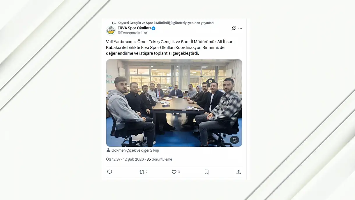 Kayseri Vali Yardıcısı Ömer Tekeş Gençlik ve Spor İl Müdürü Ali İhsan Kabakcı ile birlikte Erva Spor Okulları Koordinasyon Birimi değerlendirme ve istişare toplantısı gerçekleştirdi.