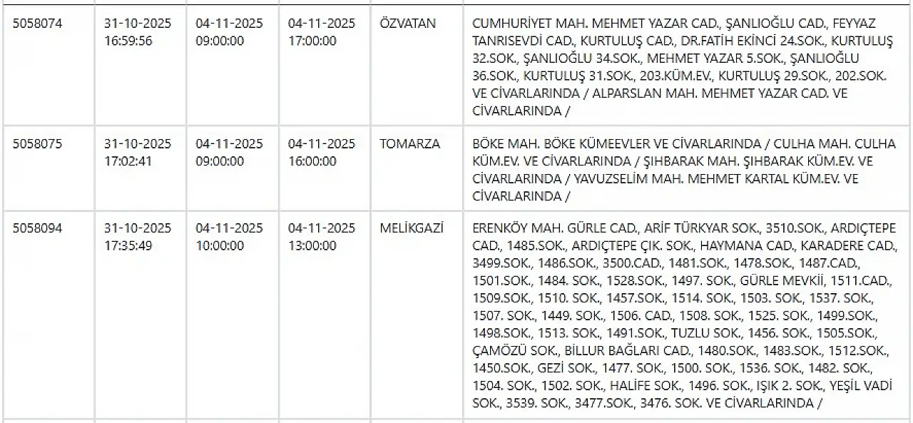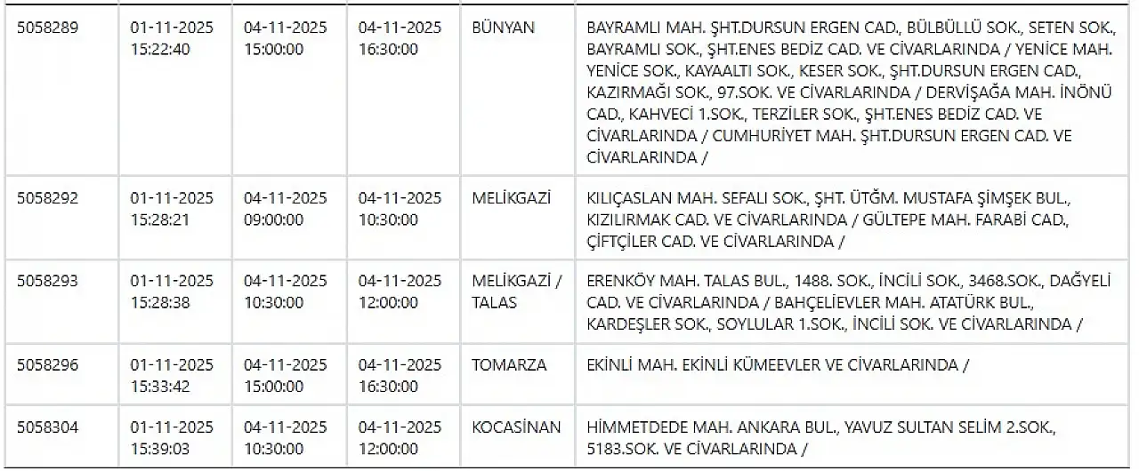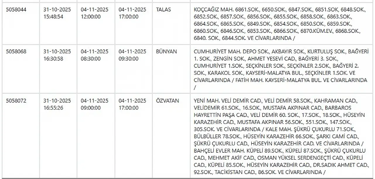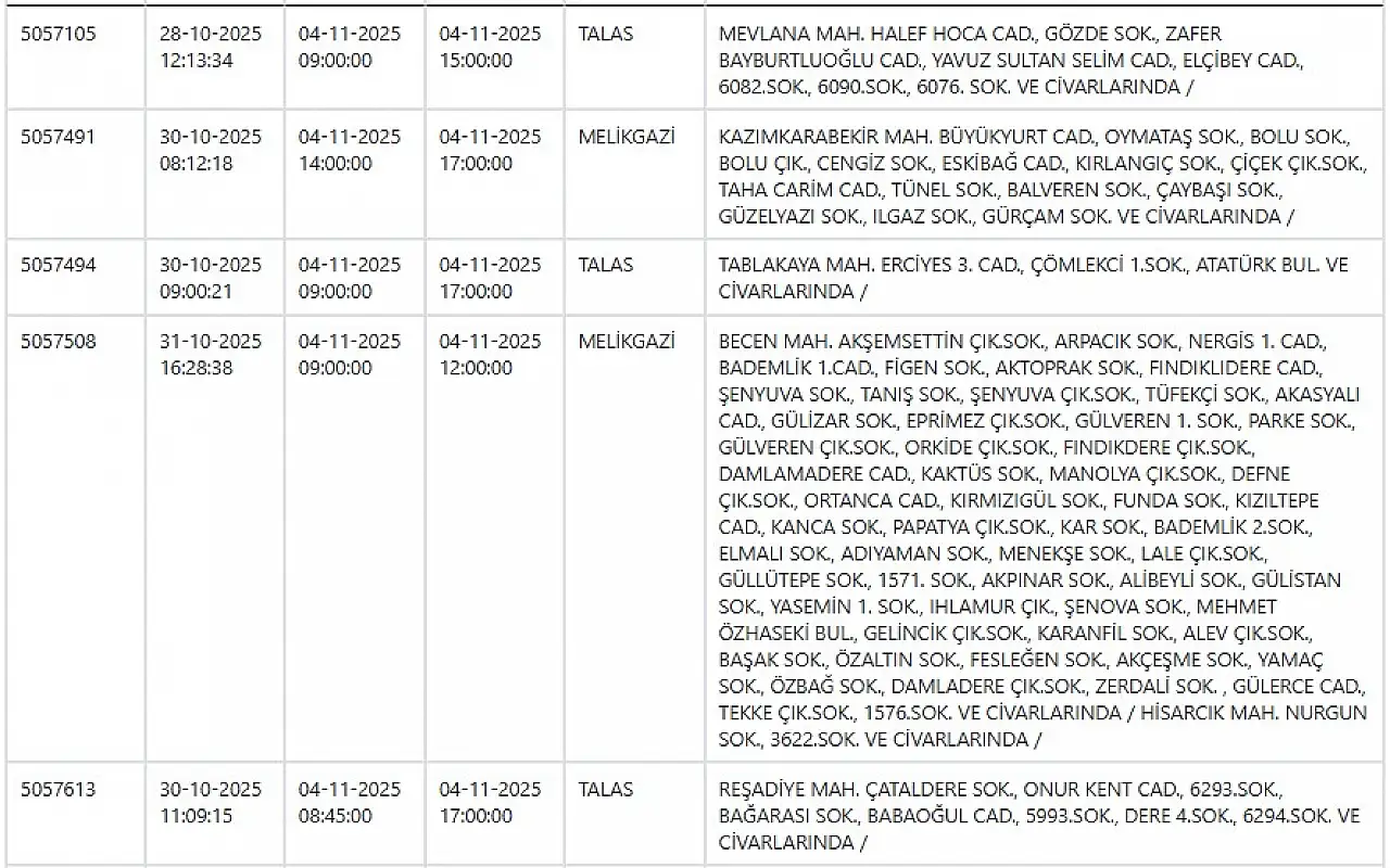 Kayseri'de büyük elektrik kesintisi: İşte tam liste... 4 Kasım 2025