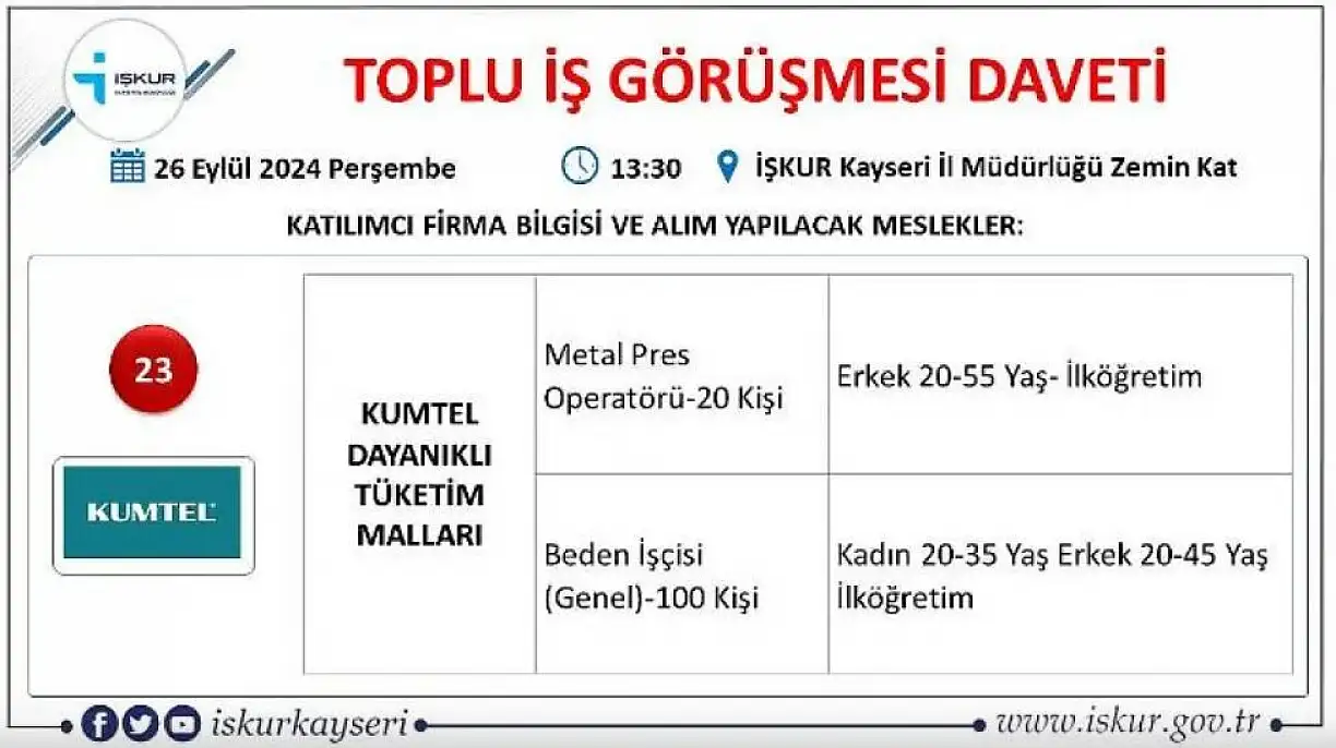 Kayseri'de büyük görüşme yarın - 710 kişi işe alınacak!
