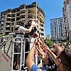 Kayseri’nin Talas ilçesinde 14 katlı binanın 13’üncü katında çıkan yangında mahsur kalanların kurtarılmasına başlandı. Ekipler, öncelikle bebek ve çocukları tahliye ederken, çocuklarına kavuşan aileler gözyaşlarına boğuldu.