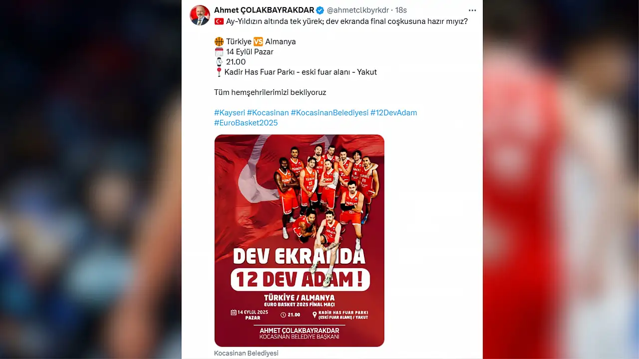 Kocasinan Belediyesi tüm Türkiye’nin nefesini tutuğu Euro Basket 2025 Final Maçı için hazırlıklarını tamamladı. Başkan Çolakbayrakdar’dan vatandaşlara çağrı geldi.
