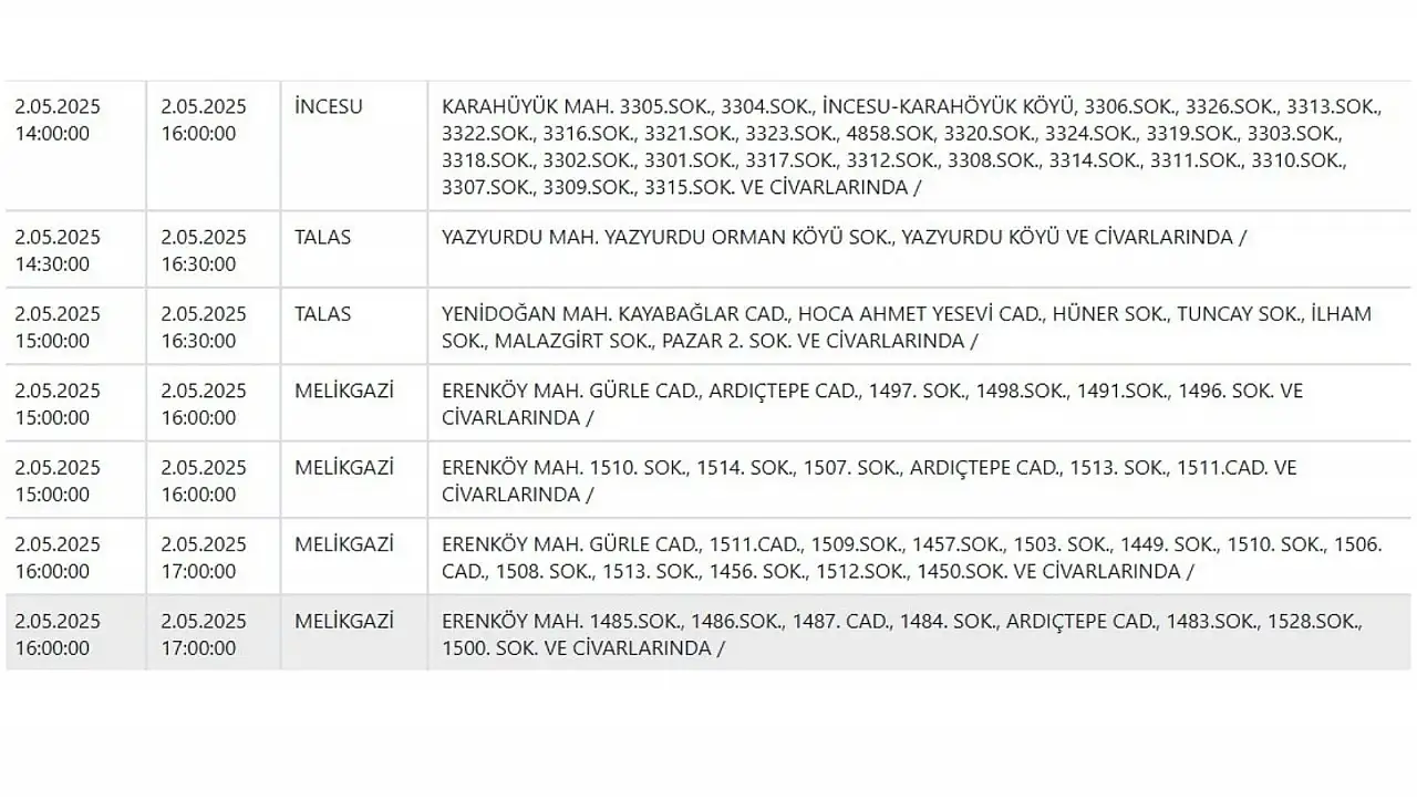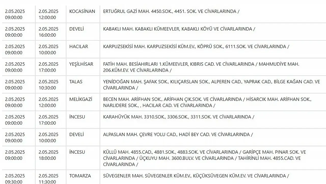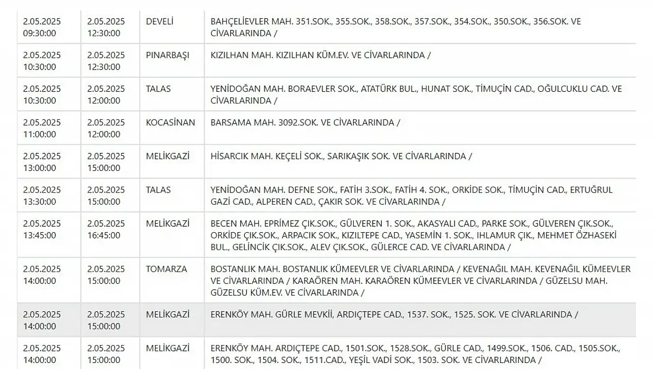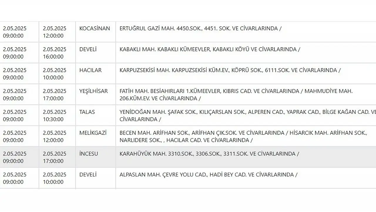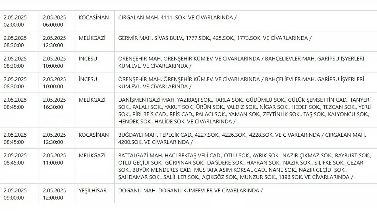 Kayseri'de dev elektrik kesintisi: 9 ilçede etkili olacak! - 2 Mayıs 2025