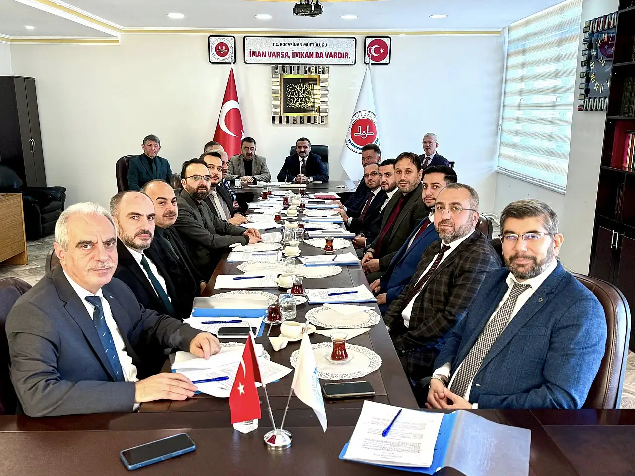 Kocasinan İlçe Müftülüğünün ev sahipliğinde düzenlenen toplantı, il ve ilçe müftülükleri arasındaki koordinasyonu güçlendirmek, hizmetlerde ortak anlayışı pekiştirmek ve yürütülen çalışmaları yerinde değerlendirmek amacıyla yapıldı. Toplantıya Kayseri Vali Yardımcısı Ömer Tekeş, il müftüsü ve yardımcıları ile ilçe müftüleri katılım sağladı.