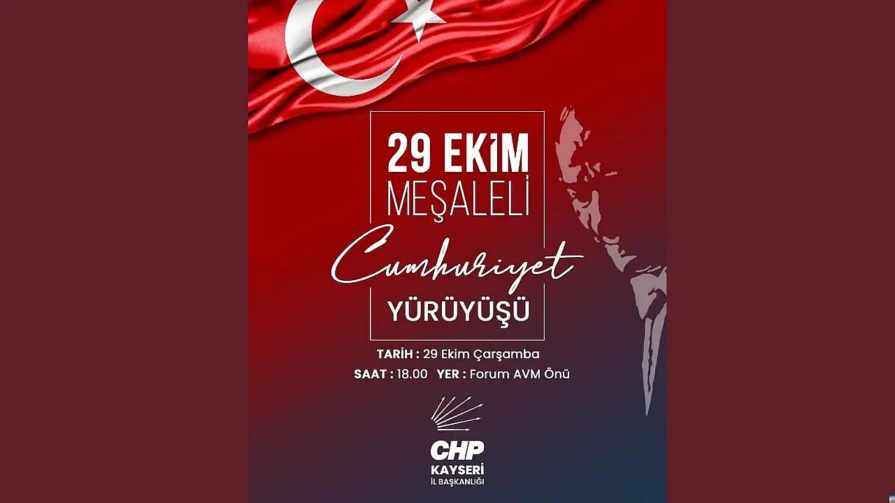 Parti yetkilileri, ‘‘Cumhuriyetimizin ışığını hep birlikte taşıyalım’‘ diyerek tüm Kayserilileri akşamki yürüyüşe davet etti. Şehrin dört bir yanından katılım beklenen etkinlikte, marşlar yankılanacak, Kayseri bir kez daha kırmızı-beyaza bürünecek.