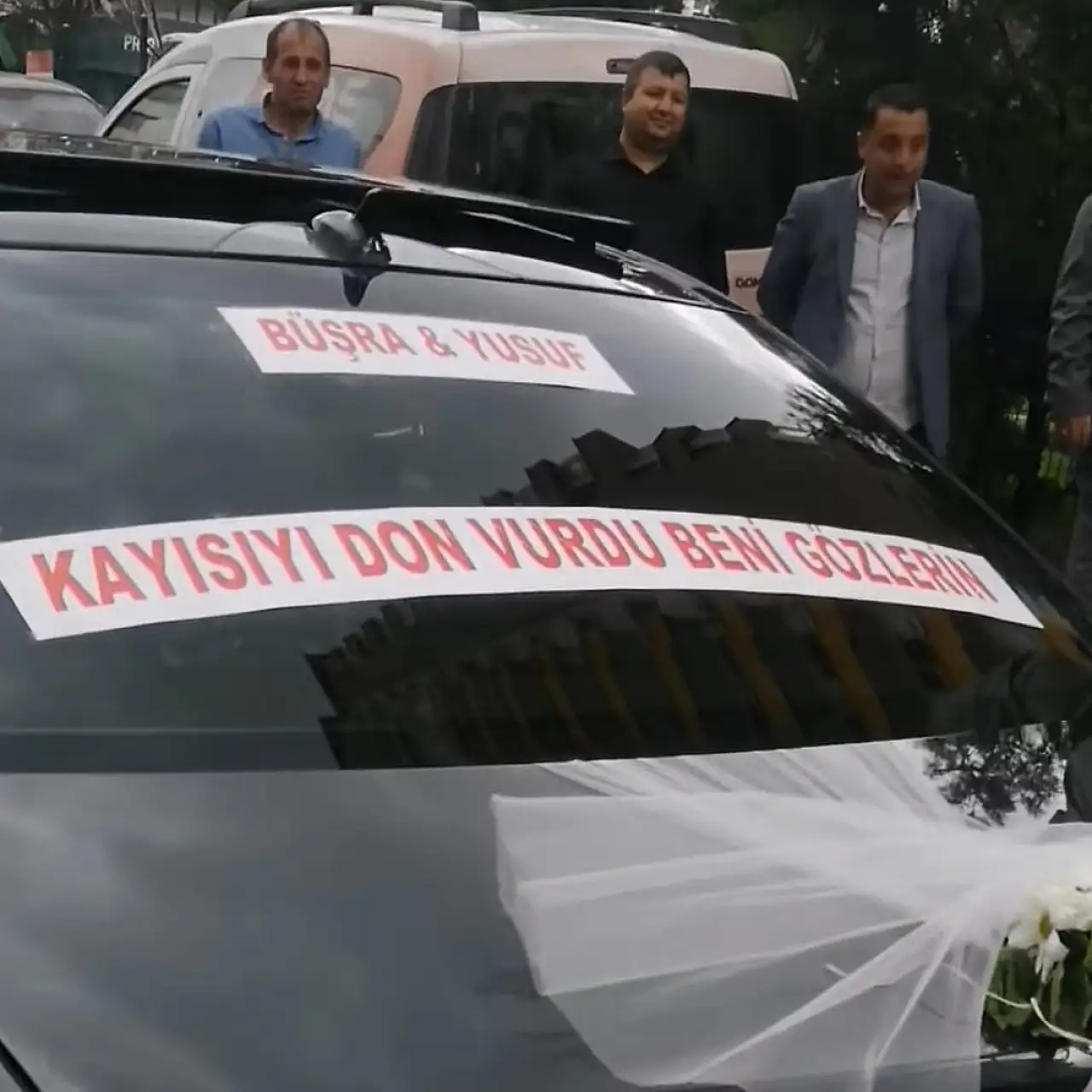 Kayseri’de bir düğün arabasının arkasına yazılan yazı ise, dikkatleri üzerine çekti. Arabanın arkasına, ‘Kayısıyı don, beni gözlerin vurdu’ yazısı yazıldı. Yazı, son günlerde Kayseri’nin bazı ilçelerinde etkili olan zirai don olayına esprili bir gönderme yaparak, hem tarımda yaşanan zorlukları hem de düğün sahiplerinin mizahi yaklaşımını gündeme taşıdı.