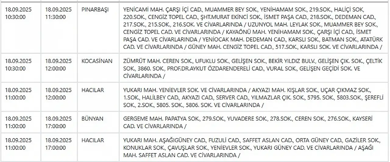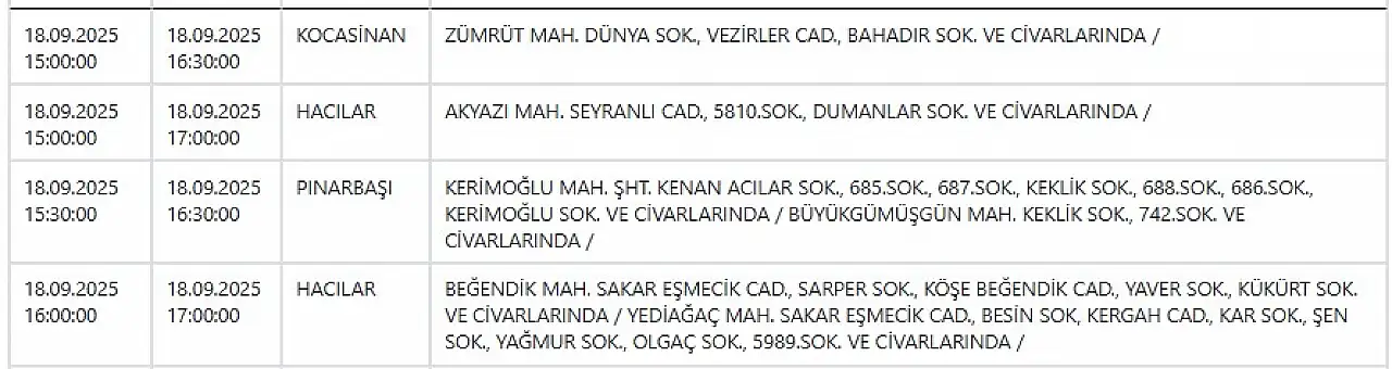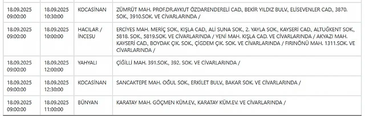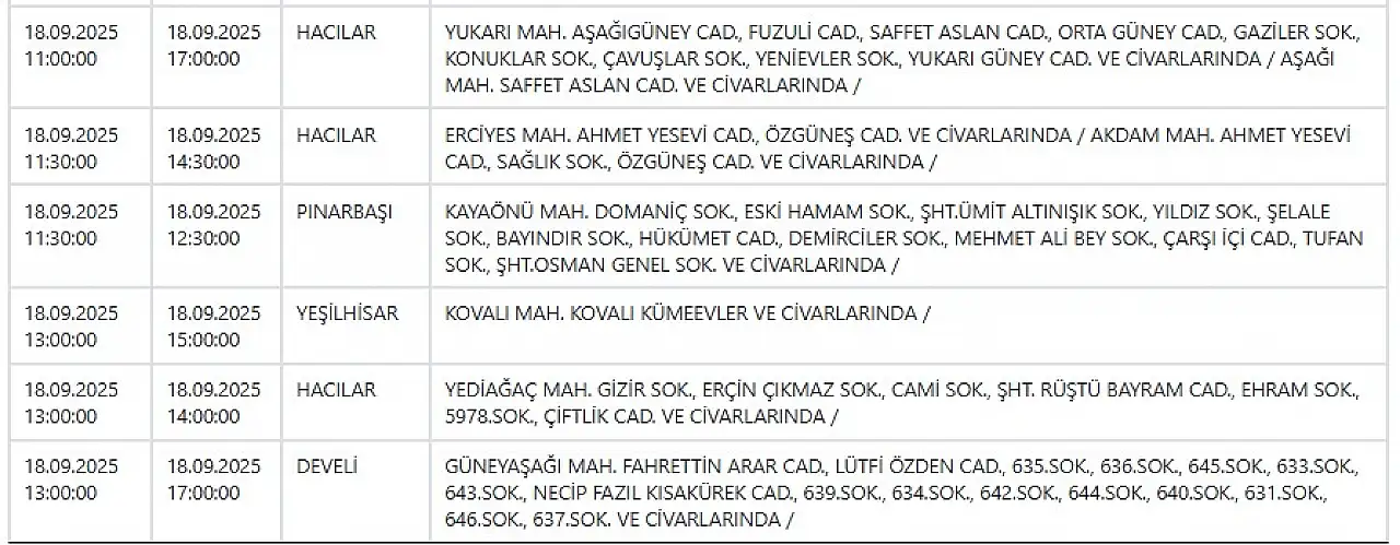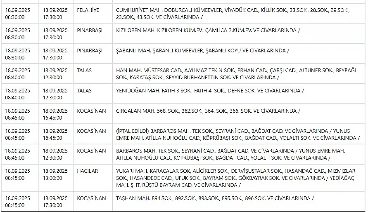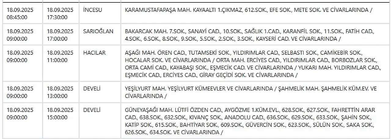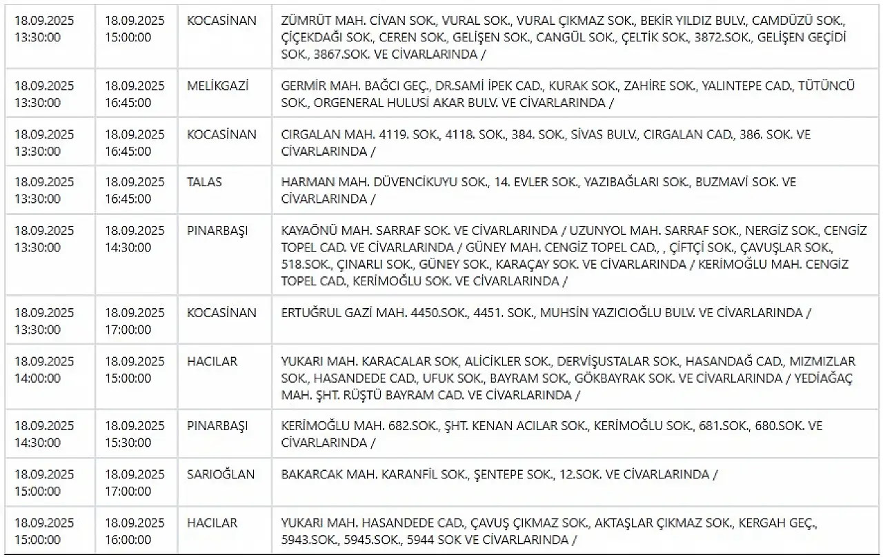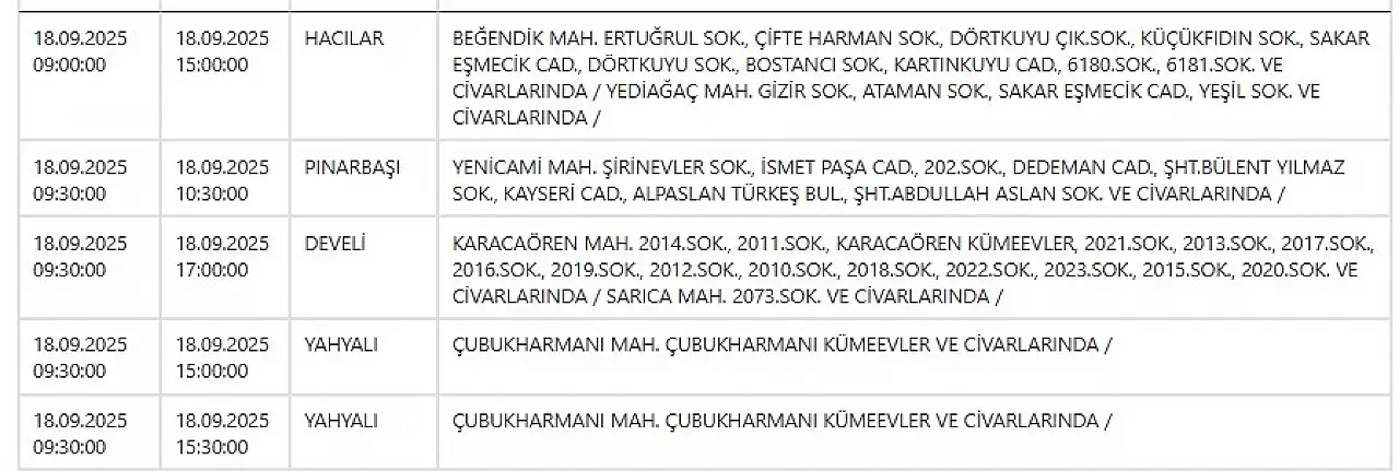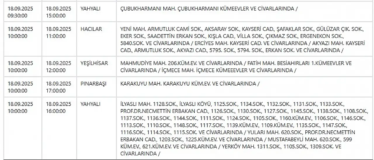 - Kayseri'de elektrik kesintisi! KCETAŞ duyurdu: 18 Eylül Perşembe Kayseri elektrikler ne zaman gelecek?
