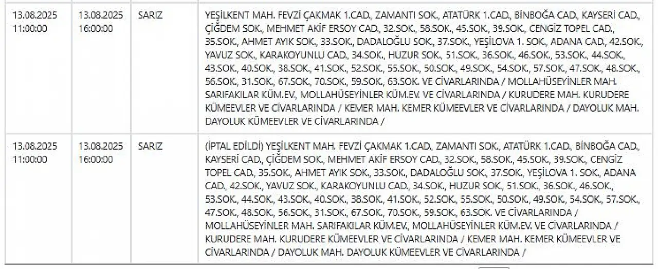 Kayseri'de yarın hangi mahallelerde elektrik kesintisi yaşanacak? – 13 Ağustos 2025