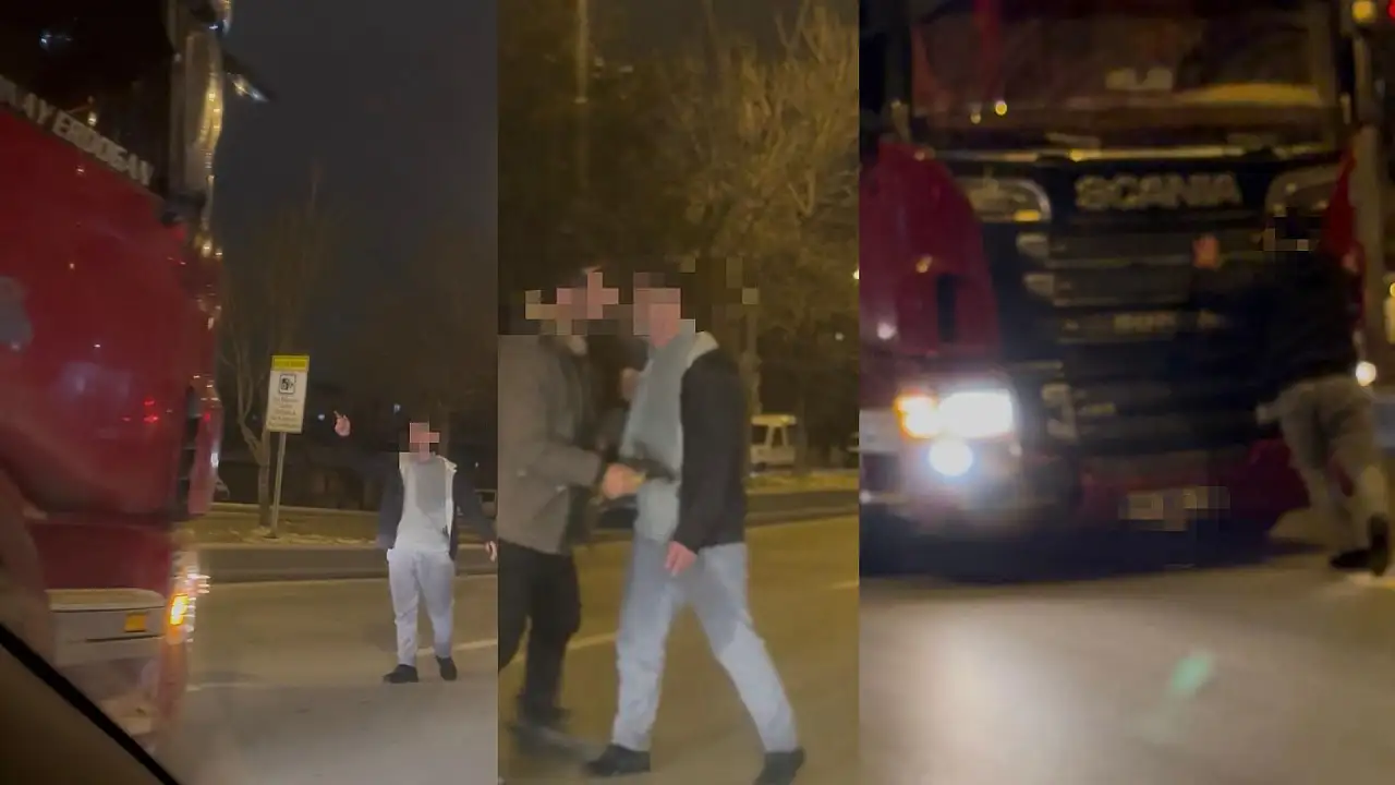 Kayseri'nin Kocasinan ilçesinde alkollü olduğu iddia edilen bir şahıs, ağaç yüklü bir tırın önüne geçerek gitmesine izin vermemişti. Olayla ilgili polis ekipleri tarafından yapılan çalışmalarda, şahıs hakkında 'trafiğin güvenliğini tehlikeye sokmak' suçundan adli işlem başlatılarak, 993 TL idari para cezası yazıldı. Detaylar haberimizde...