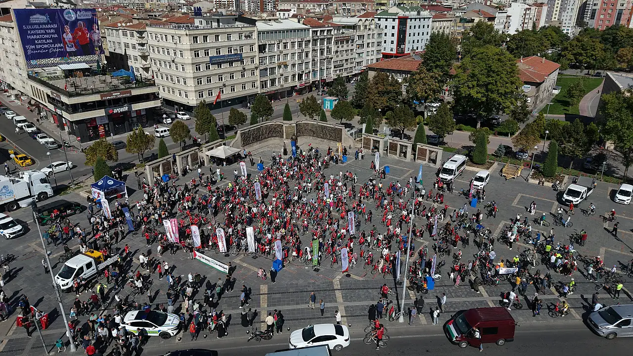 Kayseri İlim Yayma Cemiyeti, Filistin halkına destek olmak ve farkındalık oluşturmak amacıyla ‘‘Kayseri’den Filistin’e Küresel Sumud Filosu’na Destek’‘ adlı bisiklet turu düzenledi. Cumhuriyet Meydanı’nda başlayan etkinliğe Kayseri Büyükşehir Belediye Başkanı Memduh Büyükkılıç, sivil toplum kuruluşu temsilcileri ve çok sayıda vatandaş katıldı.