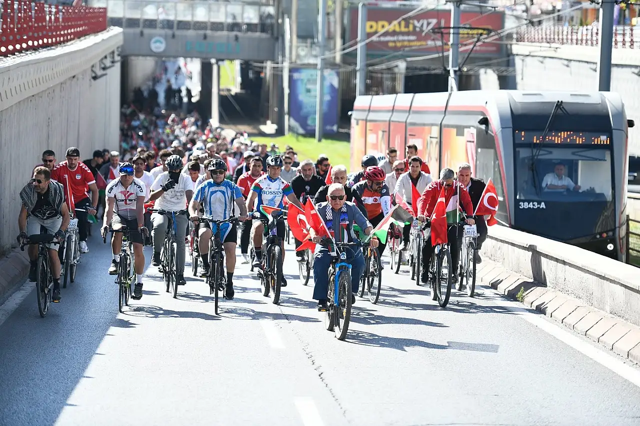 Start kornasının çalmasıyla başlayan bisiklet turunda Başkan Büyükkılıç, vatandaşlarla birlikte pedal çevirdi. Gençlerin yoğun ilgi gösterdiği etkinlikte renkli görüntüler yaşandı. Katılımcılar, Filistin’e destek sloganları eşliğinde Cumhuriyet Meydanı’ndan Recep Tayyip Erdoğan Millet Bahçesi’ne kadar pedal çevirdi.