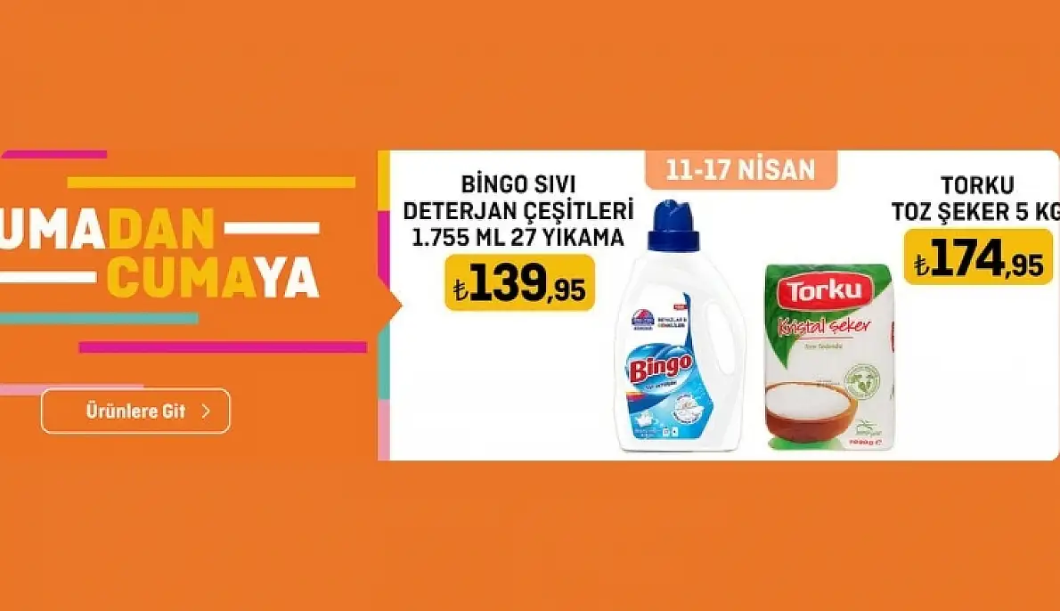 11-17 Nisan tarihleri arasında farklı ürünlerde de indirimler gerçekleştirilecek. Toz şeker, deterjan ürünleri başta olmak üzere bir çok ürün grubundan indirim vatandaşların ekonomik alışveriş yolunda tecihini belirleyecek.
