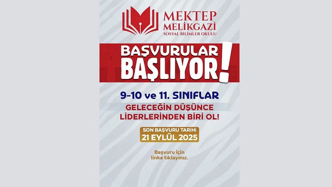 Kayseri’de 9-10-11. sınıflar için büyük fırsat başlıyor. Geleceğin liderlerini yetiştiren ‘Mektep Melikgazi’de başvurular başlıyor.