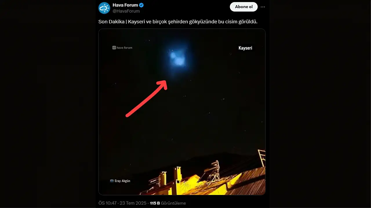 Kayseri ve Orta Anadolu Bölgesi'nin muhtelif illerinde gökyüzünde görülen ışık oluşumu sosyal medyada merak konusu oldu. Detaylar Kayseri Anadolu Haber'de...