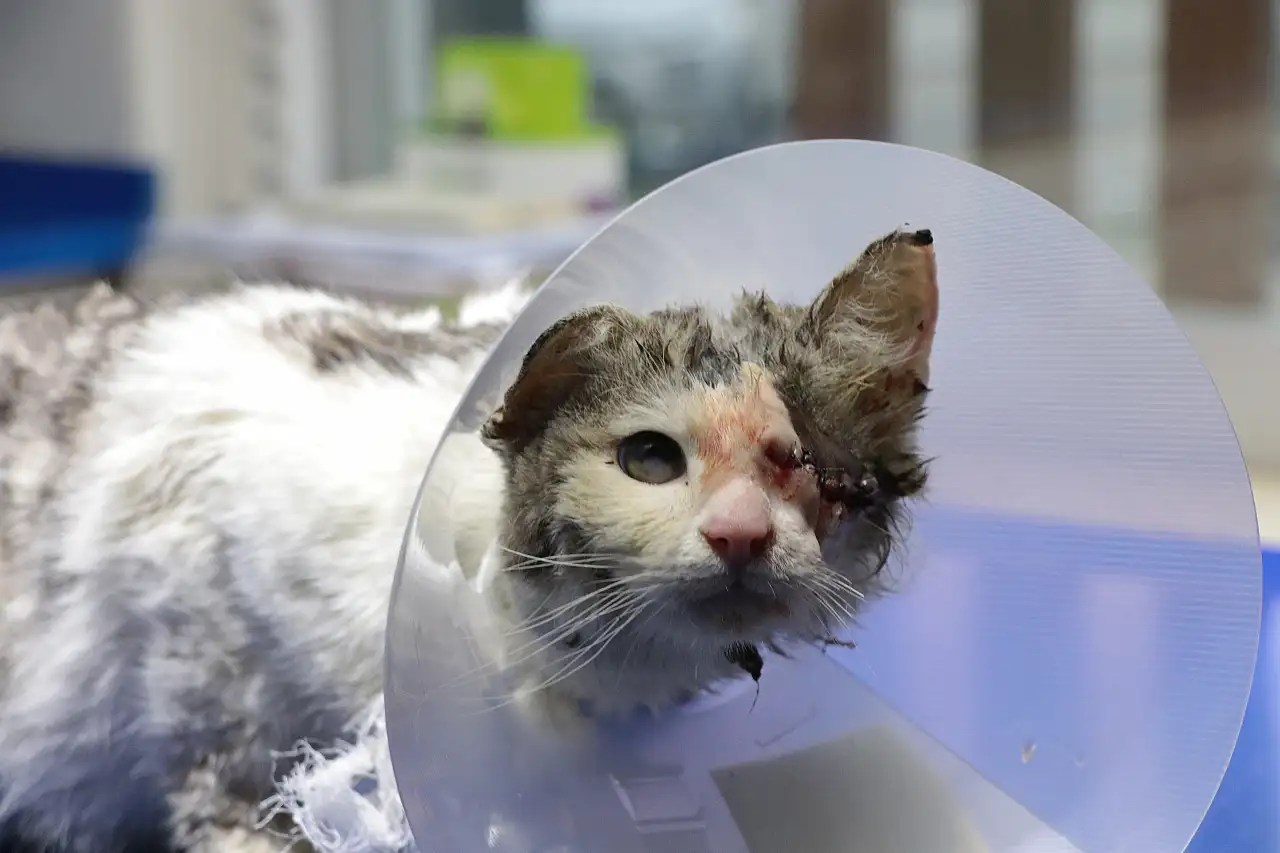 Kayseri'nin Bünyan ilçesinde göz küresi dışarı çıkmış bir sokak kedisi, veteriner hekimlerin müdahalesiyle hayata tutundu. Şimdi sahiplenilmeyi bekliyor. Detaylar Kayseri Anadolu Haber'de...