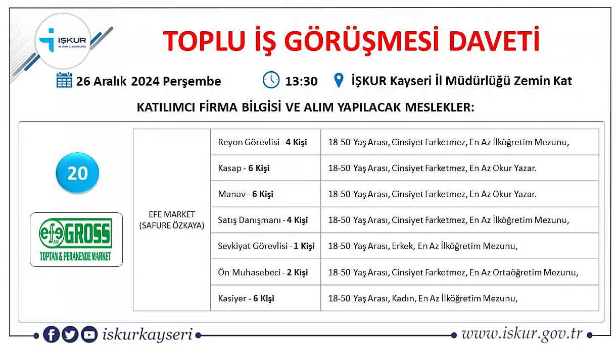 Kayseri'de gözler o tarihe çevrildi toplu iş görüşmesi gerçekleştirilecek- Onlarca firma, yüzlerce işçi alacak!